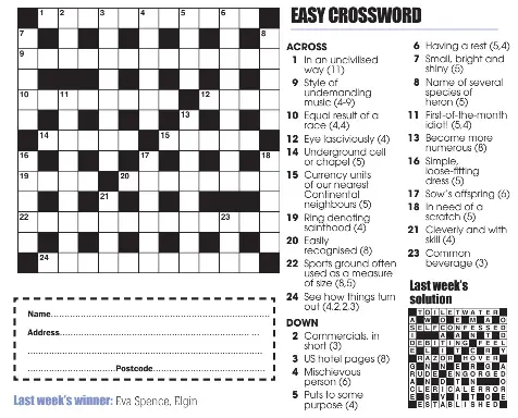 Daily telegraph prize crossword. Cryptic Crossword - puzzles.telegraph.co.uk The world-famous Telegraph Cryptic crossword, renowned as the best test of your cruciverbal skills. Play against the clock to see how you compare to other solvers, or print if you prefer a more... Crossword puzzles - The Daily Telegraph Crossword puzzles Follow the links to choose the type of crossword you wish to play and view our puzzle archive. Some crosswords can be played interactively for points; others are available to... Hollywood Tv Prize Crossword Clue and Solver - Crossword ... The CroswodSolver.com system found 25 answers for hollywood tv prize crossword clue. Our system collect crossword clues from most populer crossword, cryptic puzzle, quick/small crossword that found in Daily Mail, Daily Telegraph, Daily Express, Daily Mirror, Herald-Sun, The Courier-Mail, Dominion Post and many others popular newspaper. Telegraph crossword accident kills racing legend | Media ... The Daily Telegraph has managed to achieve what a high ... The inadvertent omission of the crucial word "nearly" from a clue in yesterday's £500 prize crossword had Telegraph readers scratching ...