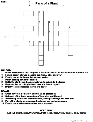 Flower parts crossword